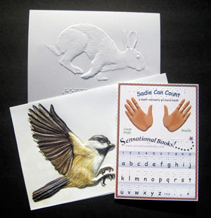 Sensational Books! would be happy to help you create your personalized cards or images. We can work with you to help you get the exact look and feel to your cards that you need. Cards can have color and embossing or just embossing. We can emboss images and Braille.