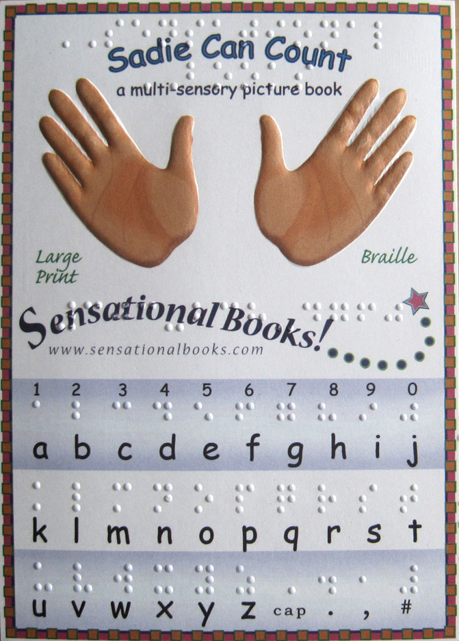 Sadie Can Count is our first children’s multi-sensory book. This award winning book has large print and Braille text, full color and fully embossed pictures. Beginning readers, sighted, blind or visually impaired can enjoy Sadie Can Count with their friends and family. The tactile and visual qualities of this book promote sensory integration for all readers including populations as diverse as Montessori students and children with autism.